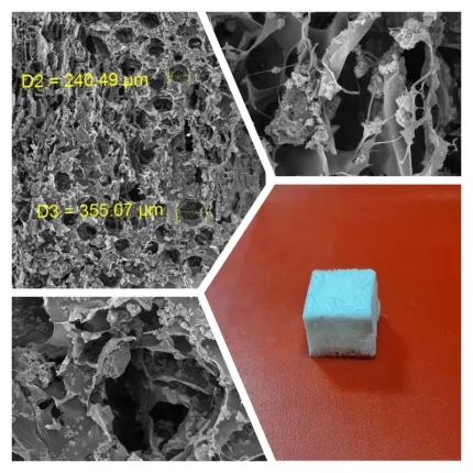 Think of this little cube as a big leap for bone healing The mineral phase of "Cube and Matchstick of NMImETIC Swelling NanoBone Powder is at the nano scale and mimics the structure of natural bone. They are produced in various shapes and structures to meet the specific needs of orthopedic surgeons, neurosurgeons, maxillofacial surgeons, and dental professionals. Soft-structured models are widely used in dentistry and maxillofacial surgery, while hard models—such as cube- or matchstick-shaped forms—are primarily employed in orthopedic and neurosurgical procedures. Their interconnected, porous architecture facilitates superior blood adsorption, and their specialized chemistry and structural engineering support effective and accelerated bone regeneration. What you're seeing here isn't just a piece of technology—it's the future of bone regeneration. This is a cube of our NMImETIC Swelling NanoBone Powder, and it's engineered to work in harmony with the body's natural healing process. On the left, our SEM images reveal the magic: a highly porous, interconnected network. The image showcases its incredible porous structure, with interconnected pores ranging in size (e.g., D2 = 240.49 µm, D3 = 355.07 µm), providing the optimal environment for osteoconduction and cell infiltration. Imagine millions of microscopic highways for new cells and blood vessels to travel, all designed to rebuild bone from the inside out. This isn't just a filler; it's a biological scaffold that actively encourages new bone to grow. Crafted from spherical nano-hydroxyapatite and tricalcium phosphate, this is biomimicry at its finest. It's designed for surgeons who demand precision, reliability, and superior patient outcomes.